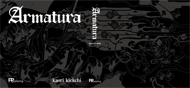 WEB漫画「Armatura」のカバーデザイン。黒の紙にUVにて光沢を付け鎧のような表現をし、銀箔によりアクセントを付けました。本棚においてもカッコいいと思わせるデザインです。