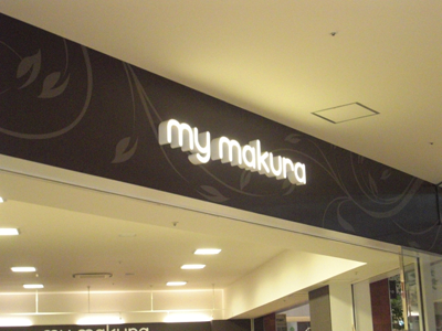 テナント店舗のファサードグラフィックデザイン。店舗全体をぐるりと囲むようにダークブラウンの帯を巡らせ、店舗全体を際立たせ主張させるとともに、帯自体に連続した薄いレリーフを付け、商品に影響しないが、店舗としてのイメージを表現してファサードを彩りました。